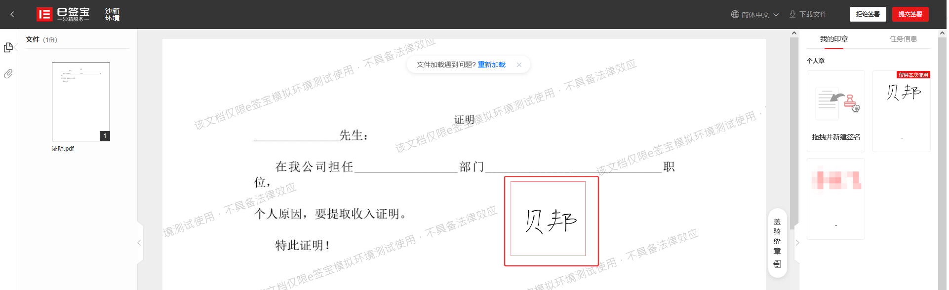 说明:本次手绘签名仅用作本次使用,如果需要重复使用手绘签名,可以在个人印章中创建,具体步骤详见【请点击】。