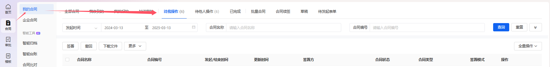 点击【查看全部】会跳转到【合同】-【我的合同】-【待我操作】页面。