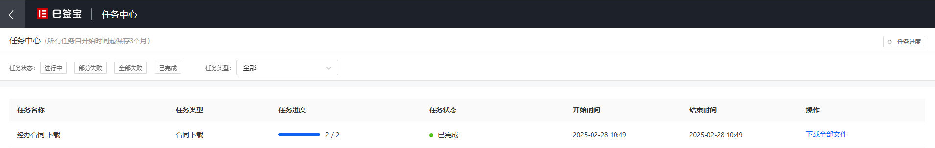 点击【任务中心】跳转到任务中心页面,这里展示之前操作过的批量任务。