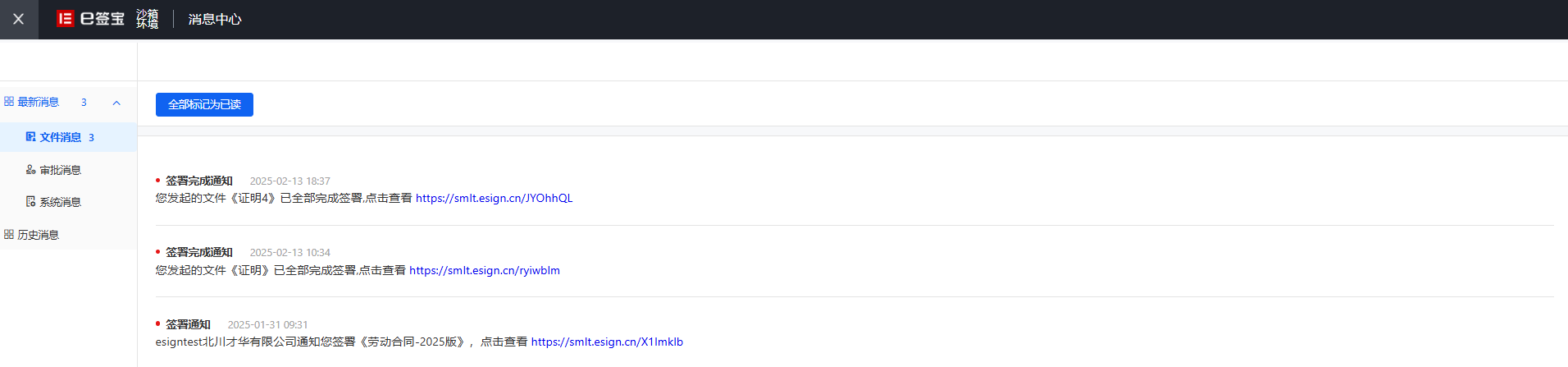 通过这里可以查看系统发送给自己的站内信消息,点击【消息】按钮或【查看全部】可以跳转到消息中心页面